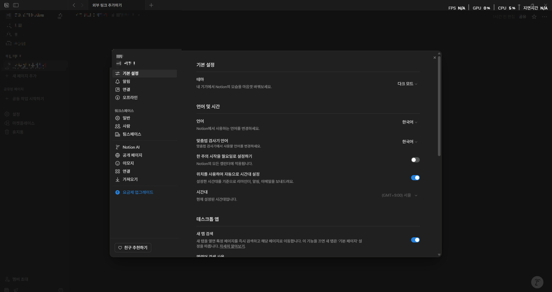 PC에서 노션 다크모드 설정하기