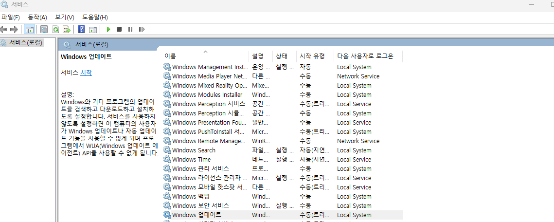 - 서비스 재시작은 “업데이트 담당자를 다시 깨우는 작업”입니다. 생각보다 많은 오류가 이 방법으로 해결됩니다.