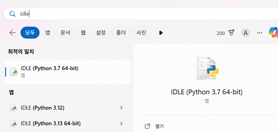 IDLE이 안 열릴 때: Python을 설치가 잘못됐거나, IDLE 빠졌을 때 발생할 수 있습니다. 이때 재설치를 해주셔야 합니다.