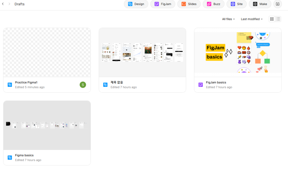 자 오늘 배운 내용은 피그마에서 새로운 파일을 만들고 이름도 변경하고 다운로드까지 하는 작업을 알아봤습니다.