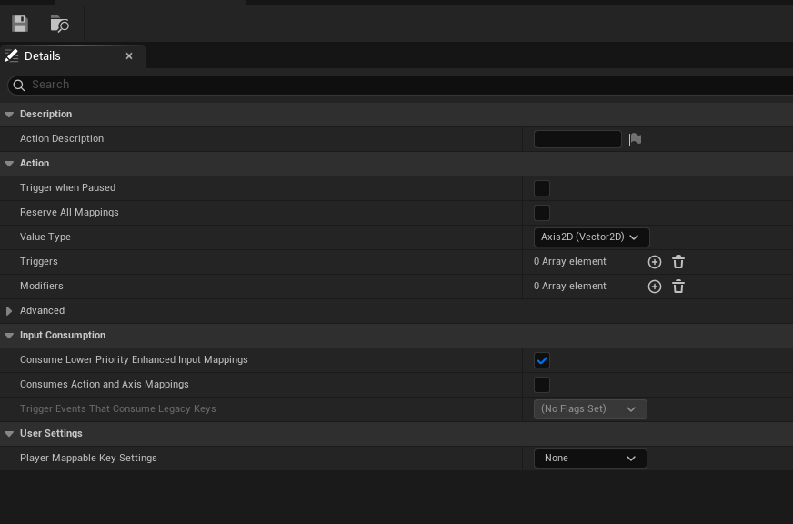 - 방향키 추가는 생성한 IMC_Player를 더블클릭한 후 Mappings 리스트에서 IA_Move를 추가합니다.