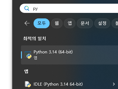 - 프로그램 목록에서 IDLE (Python 3.x) 실행합니다.