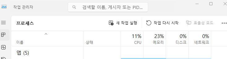 - 작업 관리자 창 열림